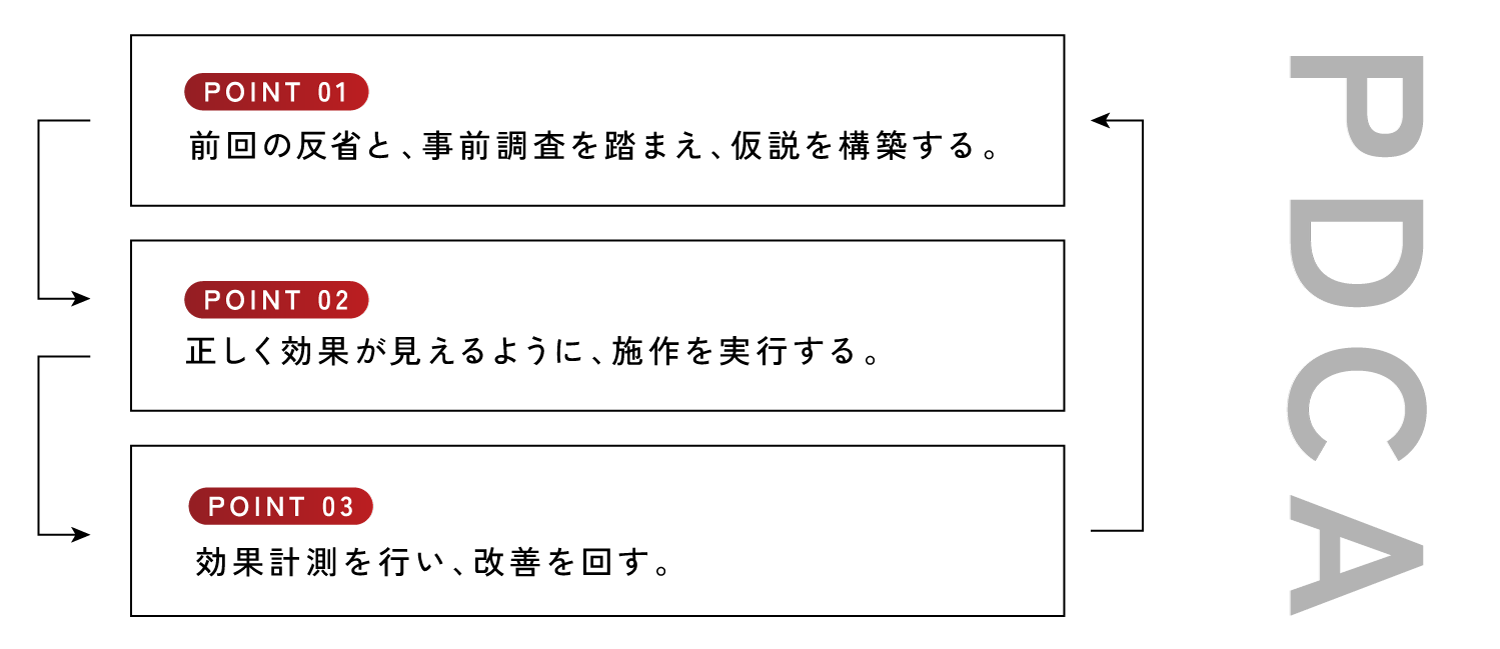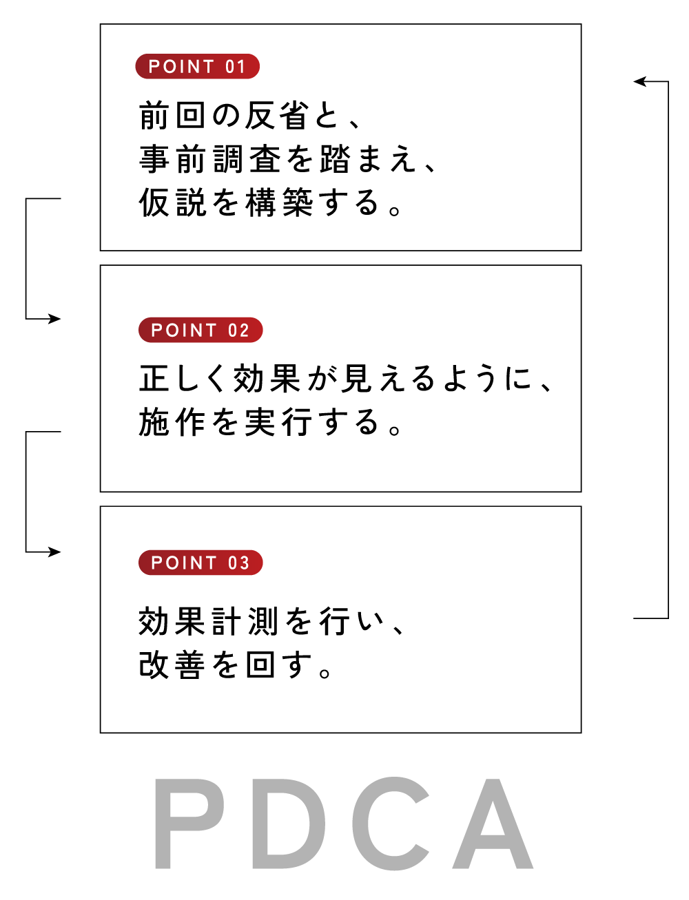 調査して仮説をもち、施作を実行し、効果をみて改善して組み立てていく